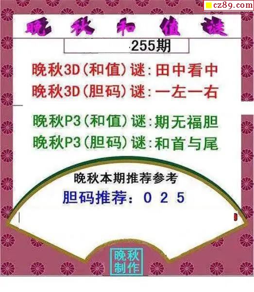 晚秋和值谜2025255期3d图谜