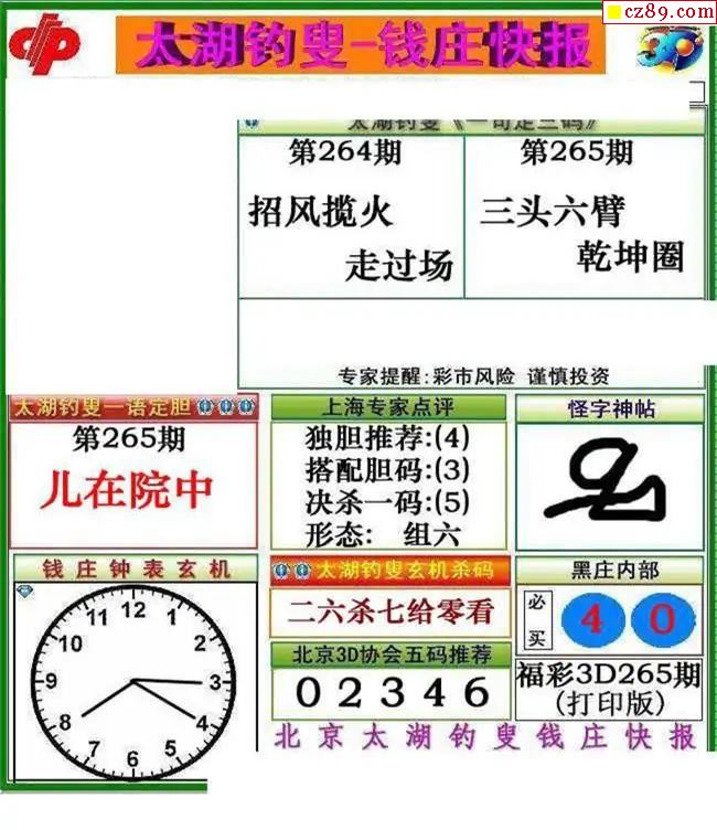 钱庄快报2025265期3d图谜