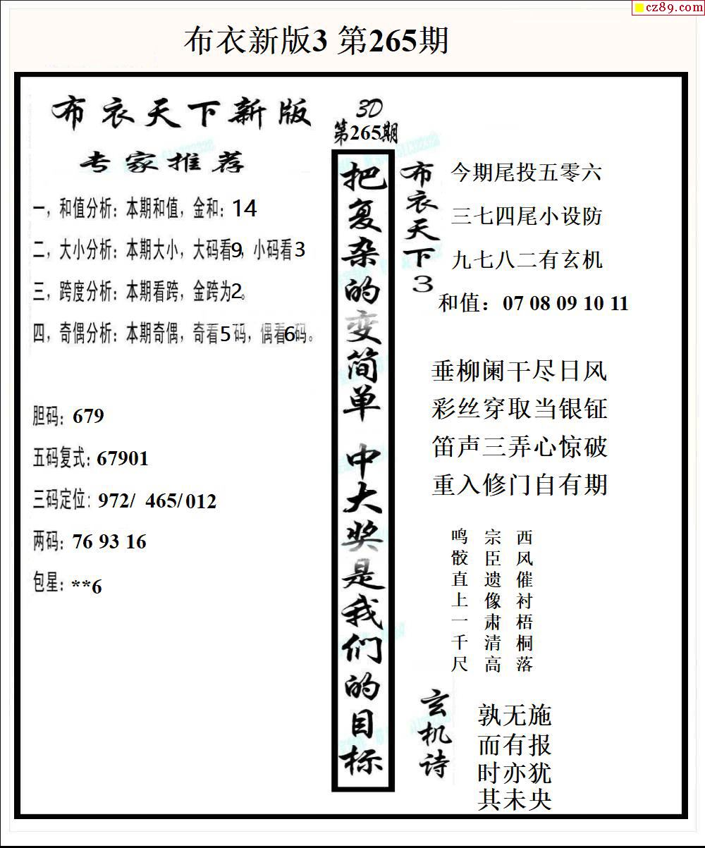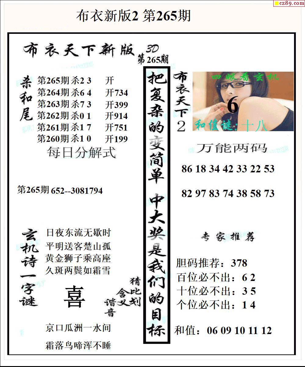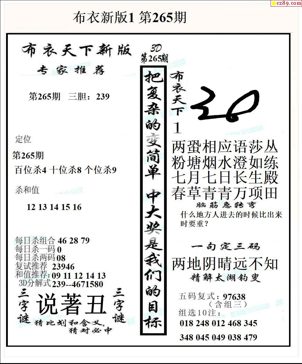 布衣天下新版2025265期3d图谜