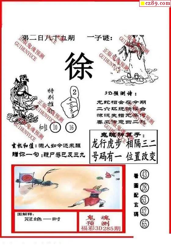 大兵鬼魂2025285期3d图谜