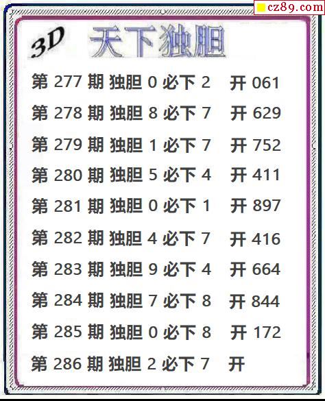 > 天下独胆2025286期3d图谜