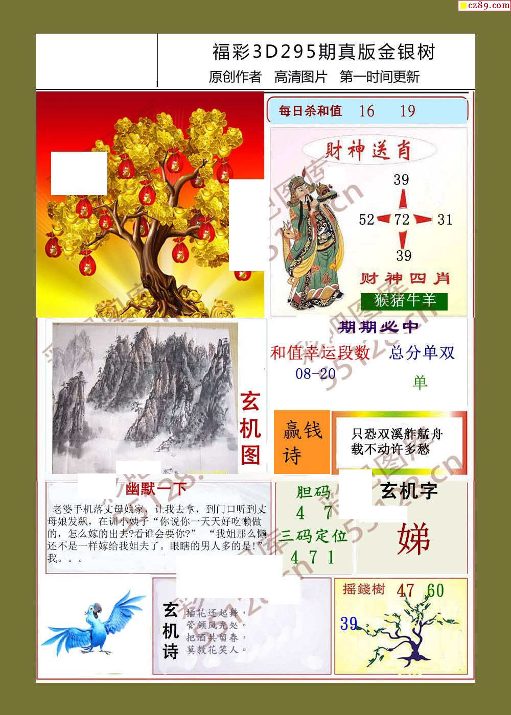 金银树25年295期福彩3d字画谜