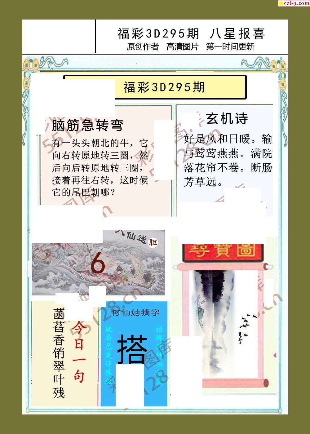 八星报喜25年295期福彩3d画谜